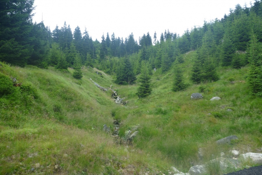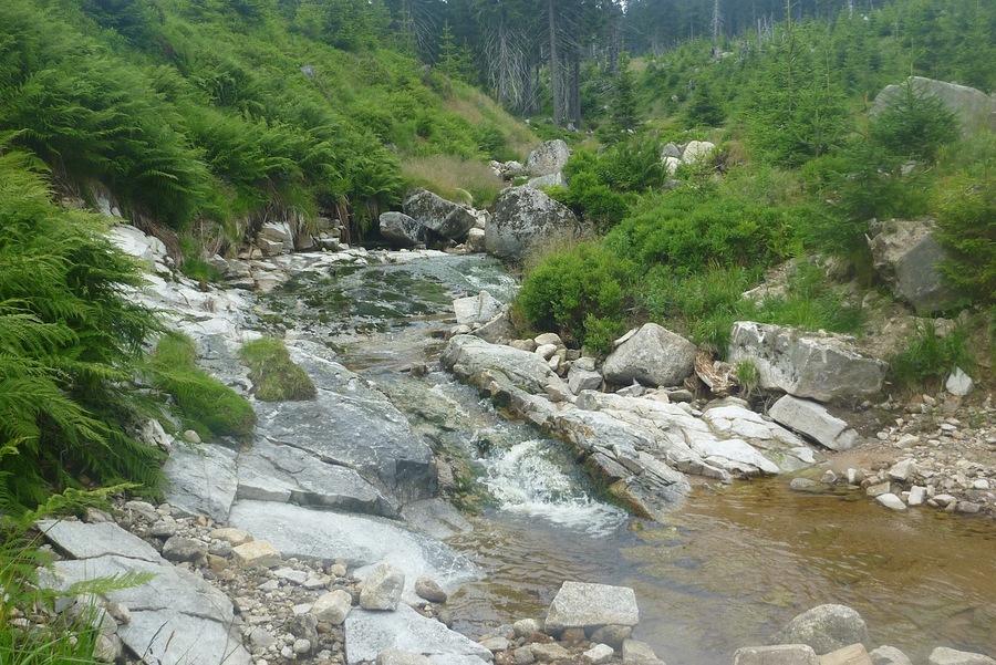 Mladý les na hřebenech Krkonoš |  Krakonošova snínadě |  Vosecký potok |