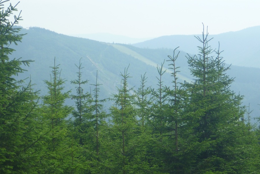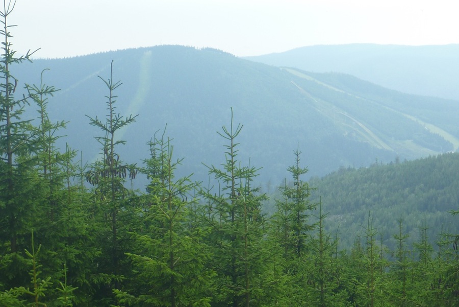Výhled na Čertovu horu |  Kontury Krkonošských hřebenů |  Cesta před námi |
