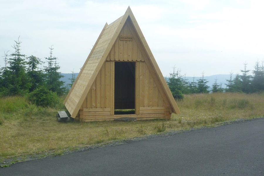 Cyklo ukazatel na terexu |  Výhled na Čertovu horu |  Zde se můžeme ukrýt před nepřízní počasí |
